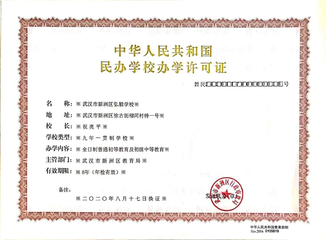 “武汉市新洲区弘毅学校”,位于湖北省武汉市新洲区徐古街柳河村(原徐古街柳河小学)。