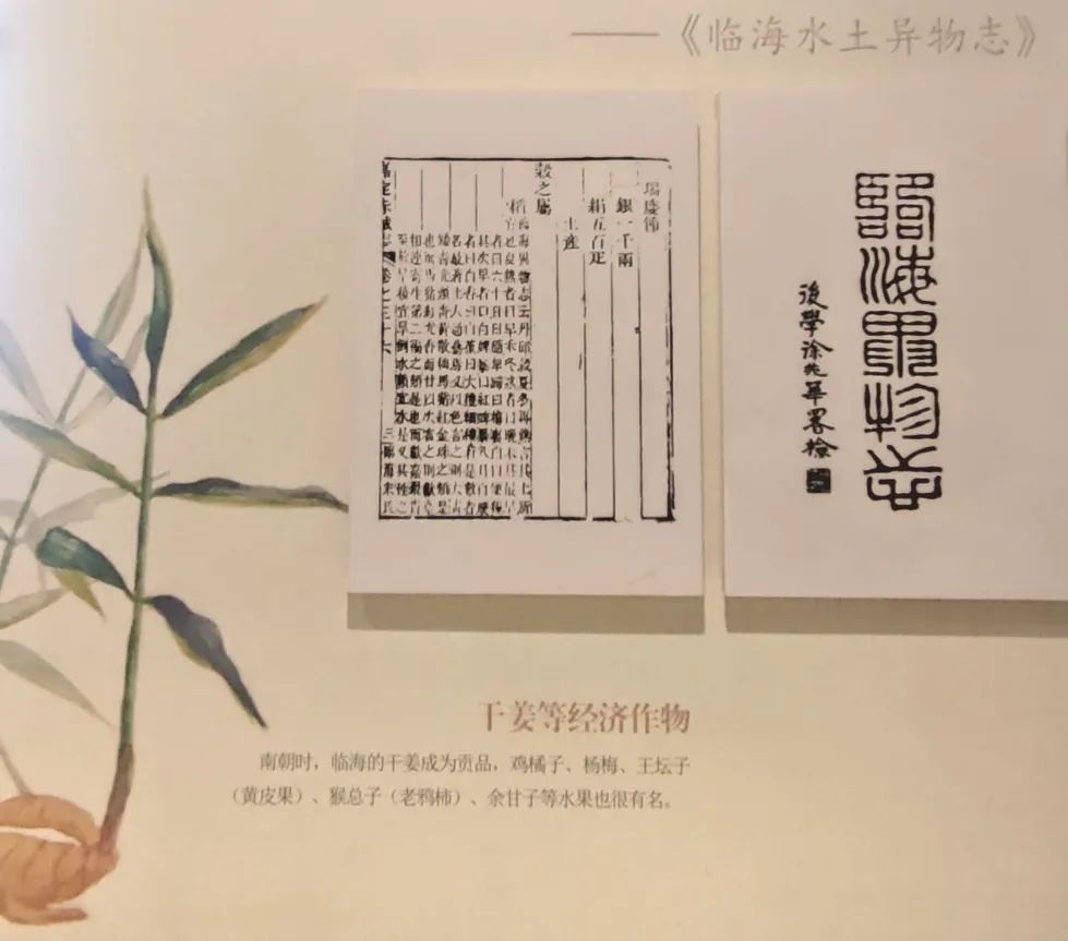 临海拥有悠久的种姜历史,三国时期,姜在临海的经济作物种类颇为出名。南朝时,临海的干姜成为贡品。《嘉定赤城志》卷三十六记载:陶弘景云“干姜惟临海章安二三村善为之。”……今章安、城门、黄杜所出尤佳,齐孔琇之为守,至以为献,则其来久矣。