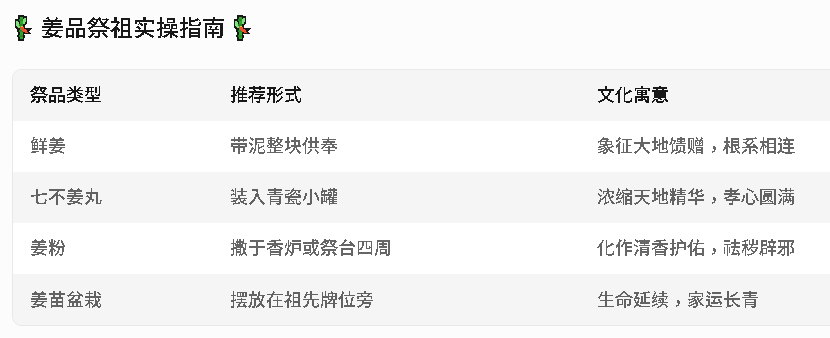🌧️ 文档中提到:“清明湿邪重,姜驱寒护阳”,祭祖用姜既应节气养生,又暗合“以阳克阴”的传统文化智慧。
