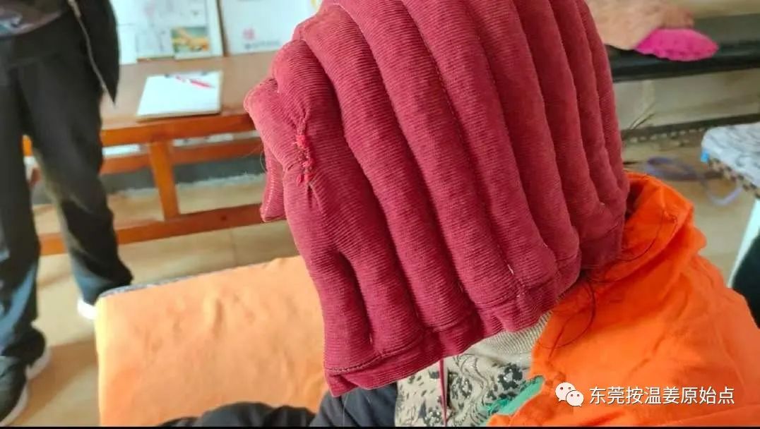 刘女士头晕有好几年了,刚开始头只是一点点晕,前几天头晕严重,27号早上五点多起来上厕所,爱人帮忙扶着刘女士坐也坐不稳,爱人第一时间打了120去了医院,检查诊断结果为颈椎退行性病变,颈3/4、4/5、5/6椎间盘突出引起的头晕,打了二瓶吊针开了一周的药,吃了三天药后刘女士说头还是晕,坐不稳,双脚无力走路需要人扶,因租房的邻居曾受益过原始点,推荐刘女士试试用原始点,今天12月1号刘女士在爱人和女媳的陪同下来到了石碣公益原始点,志工给刘女士用红豆袋先温敷半小时后,再给刘女士按推【头部、颈部、上背部、臀部】原始点,按推后外用姜神、红豆袋温敷,喝浓姜水补充内热源,温敷十多分钟后刘女士站起来试着走路,不用人扶自己可以慢慢走路了,温敷一下小时左右,刘女士分享头晕好多了,一点点晕、走路也不用人扶,也不会像刚刚来时走的东倒西歪了。