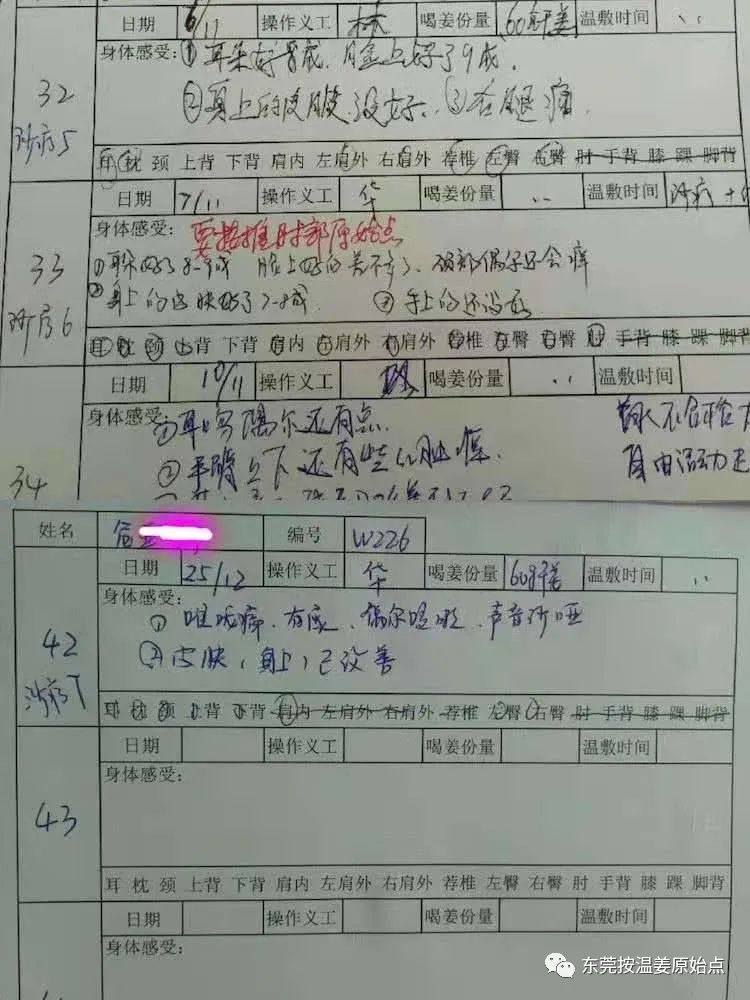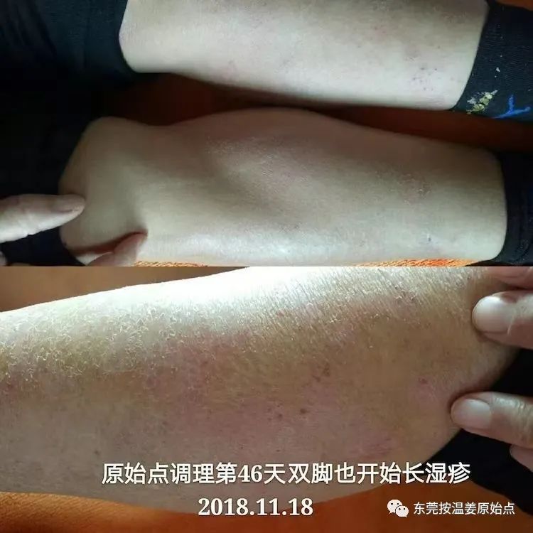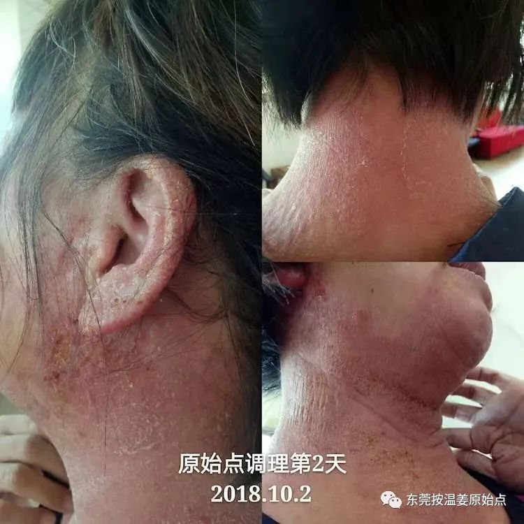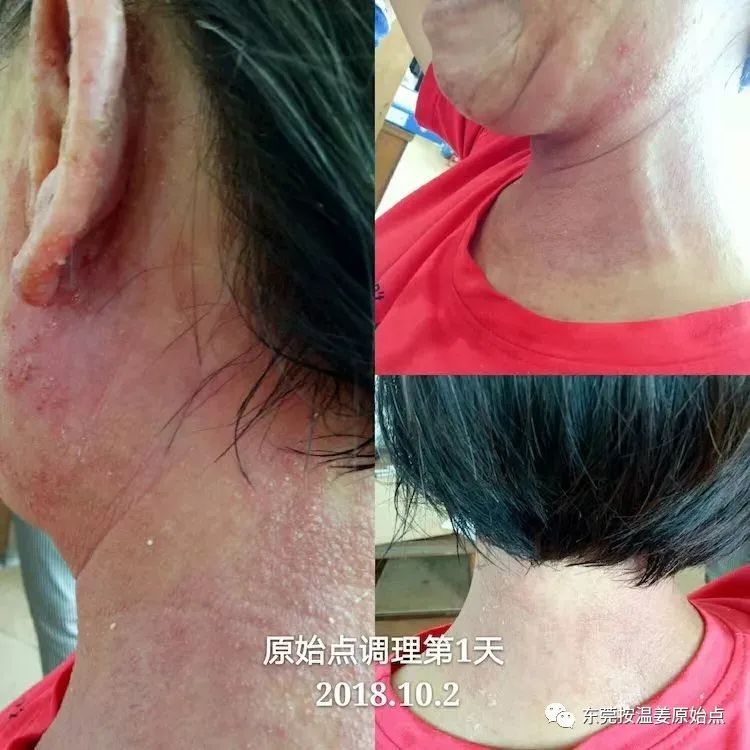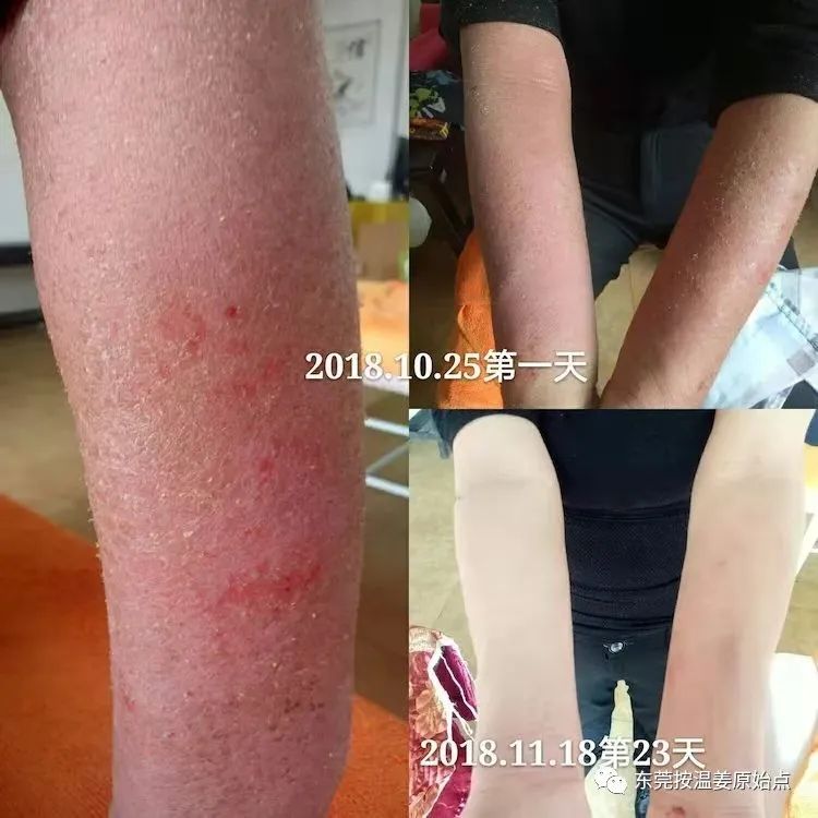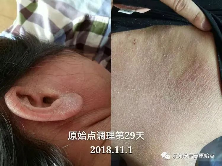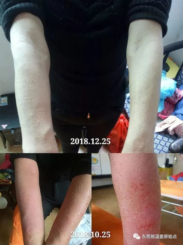 截止到2018年12月25号,危女士原始点按推共34次(皮肤康复后,一个月有时间来公益中心原始点按推1~2次,平时在家会喝姜水,外涂姜膏,偶尔也会敷下姜泥),现改善友情如下: