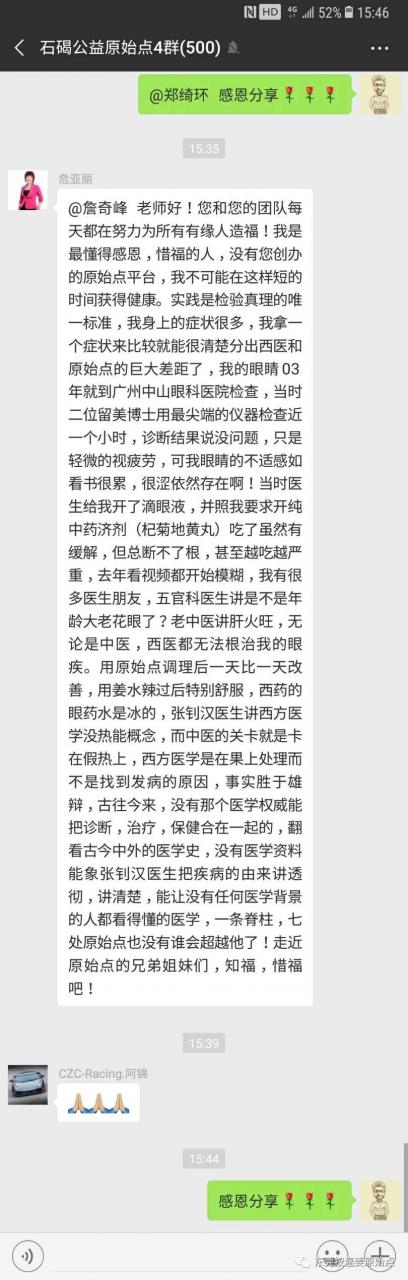 危女士,45岁,湖南人,2003年开始眼睛干涩,肾结石腰痛了一年多,乳腺增生2~3年(乳房胀痛),大腿痛半年多,危女士说身体不舒服感觉也不是很严重,又很反感去医院,所以也没吃过什么药治疗过,后来,2018年7月6号开始用原始点调理(石碣公益原始点编号W226)。