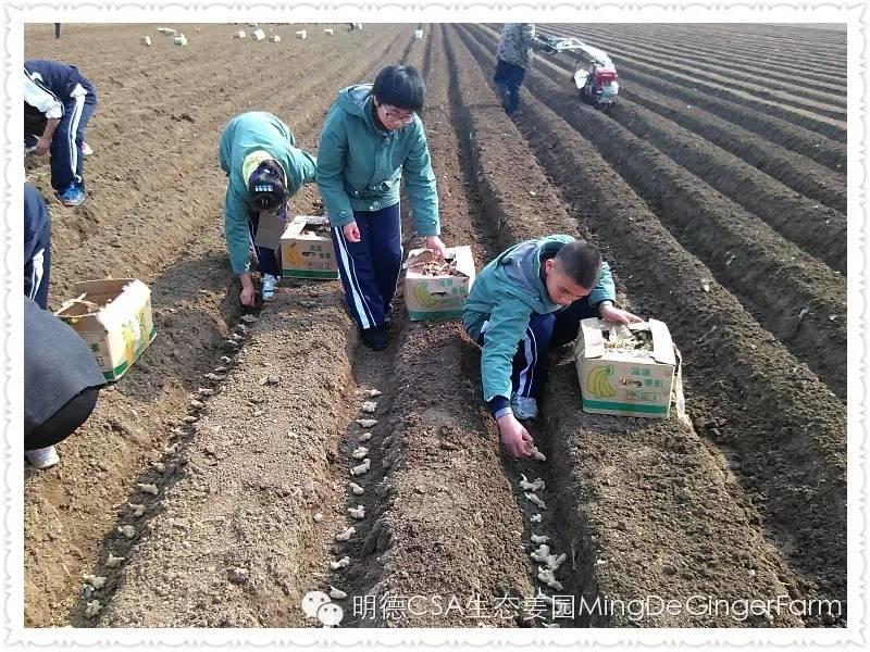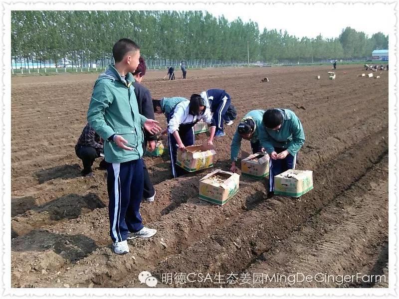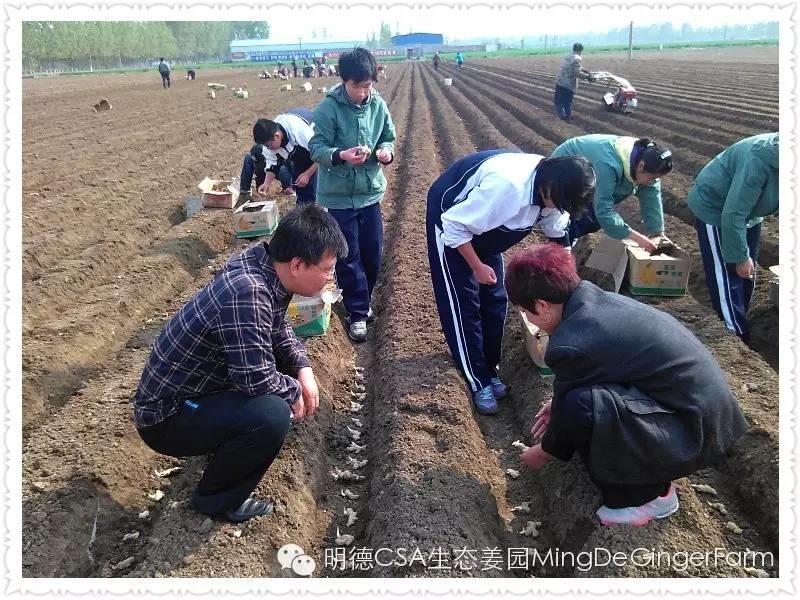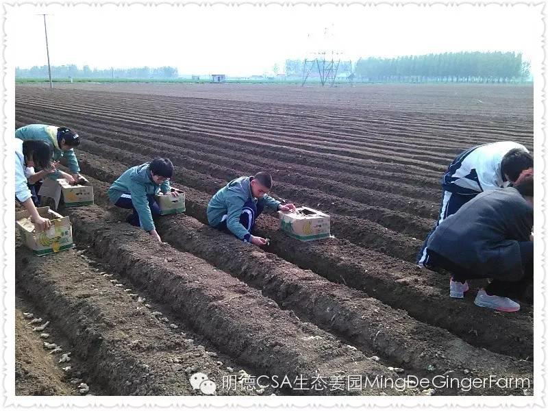 2015年4-5月春,山东曲阜春耕园学校师生一起到明德CSA生态姜园进行课外农耕实践:自然体验、乡土农耕和耐力锻炼。师生一起下田劳作体验农耕,感受农夫稼穑之辛劳。
