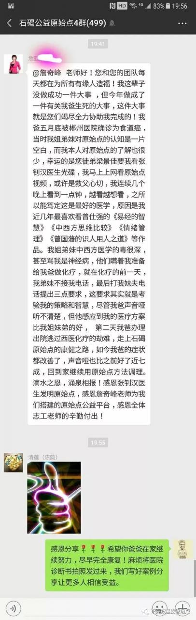 危先生女儿2018年12月25号在石碣公益原始点微信群的分享。
