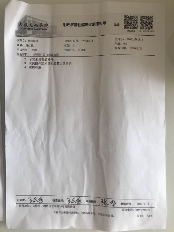 姓名:周红艳 性别:女年龄:48 检查日期:2020//2 部位:(经阴道)腔内彩检