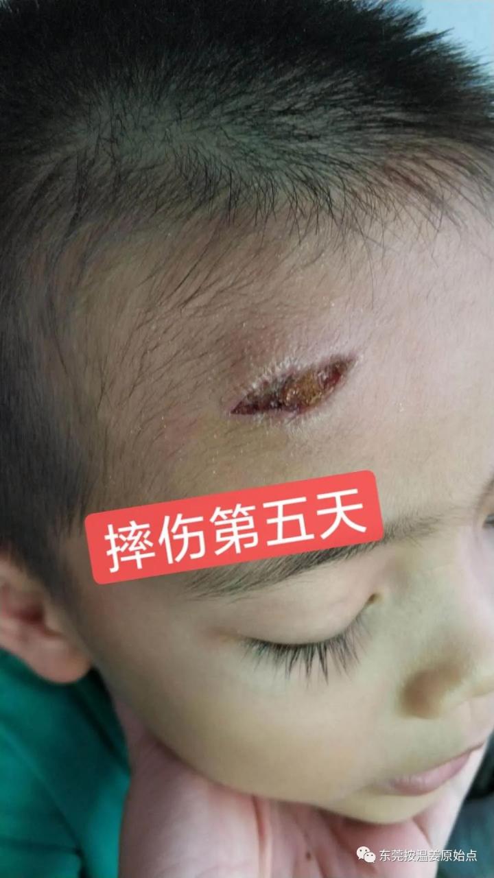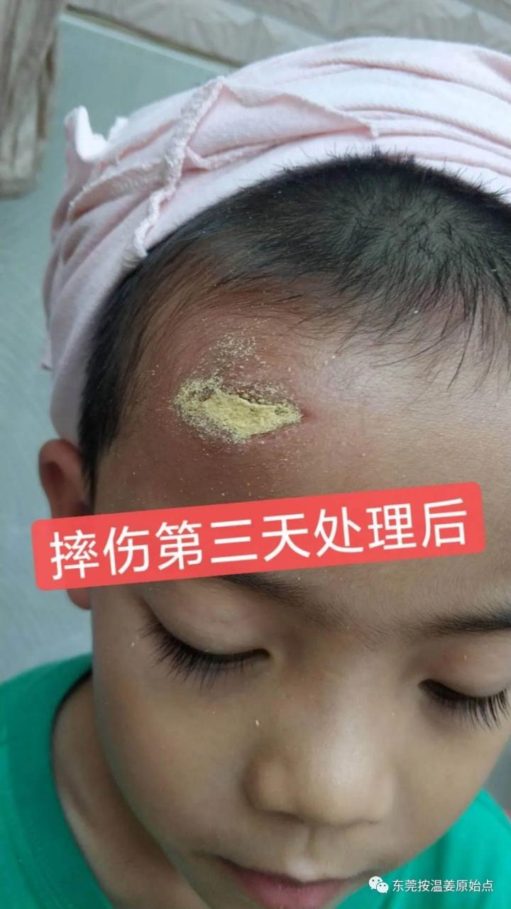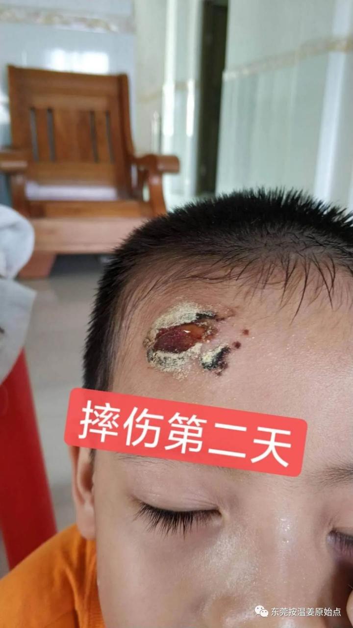 我回到家小孩已止血,但能清晰的看到一个大约长2CM深0.5CM的伤口,我是刚接触原始点不久,但原始点理论我还是有一定的概念,我赶紧煲姜汤帮他清洗伤口,然后用干姜粉裹上,晚上再按头部原始点加温敷,第二天起来发现伤口有浓状物流出,于是我马上请教阿平姐,按阿姐的提示做,每天清洗伤口2-3次,并将浓状物挤压干净后再用风筒将伤口吹干清洗的水份,洒上姜粉,按推头部原始点,贴上暖暖贴温敷头部(暖贴贴约11小时左右,因天气太热小孩出汗多不愿意温敷),并引导小孩喝姜水,增加内热源,以上步骤每天重复的做。到第7天(即一周后)因天气太热小孩不愿温敷,只有减少温敷头部时间,但其他的步骤不减少,而我耐心的照料下(小孩也乖配合我每天的处理),伤口两星期基本康复,感谢张医师的原始点医学,感谢阿平姐的指点,谢谢。
