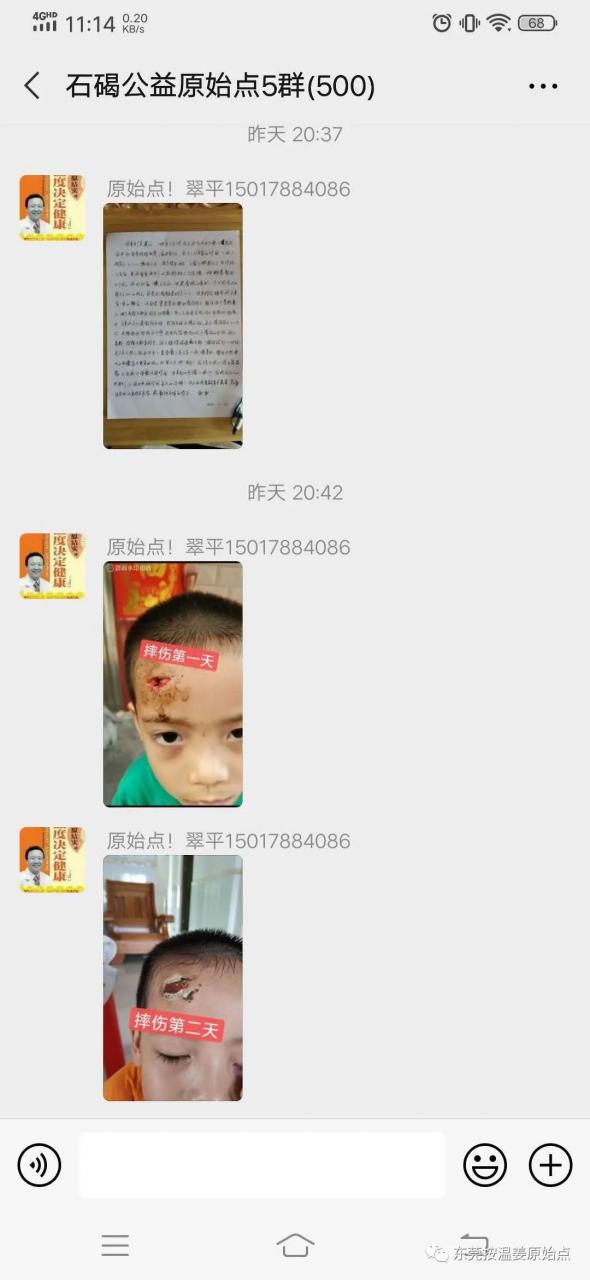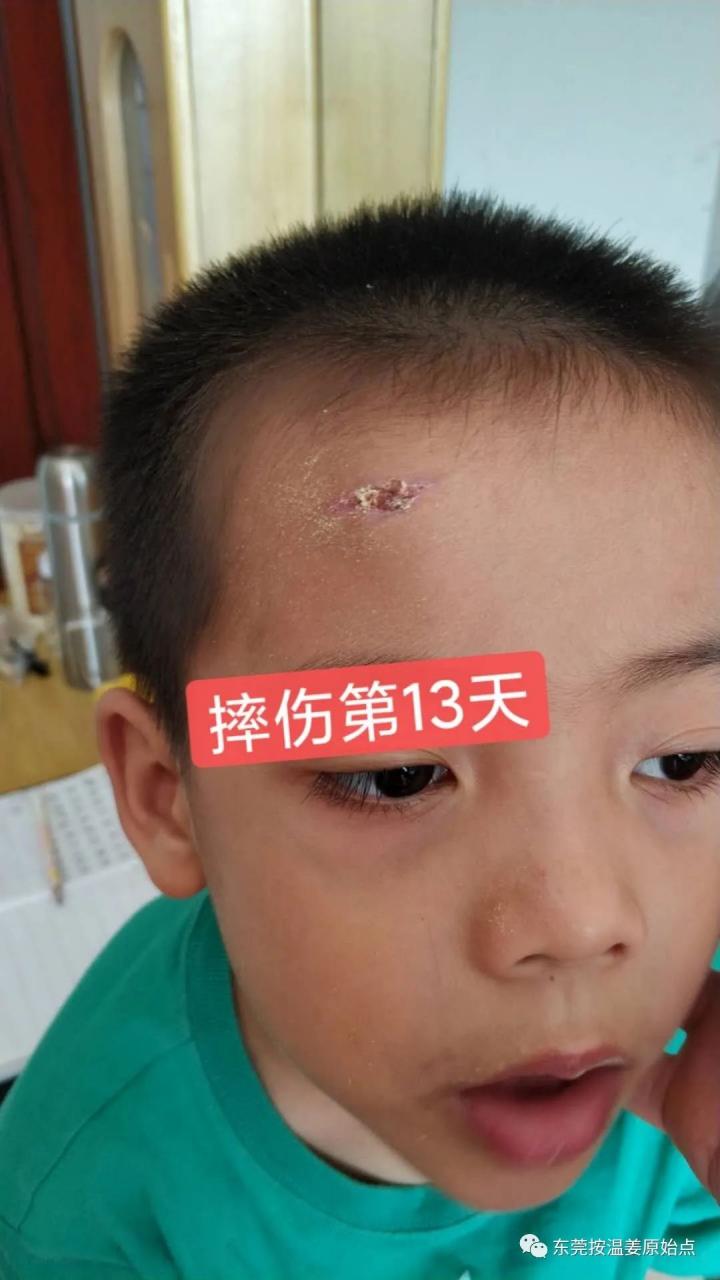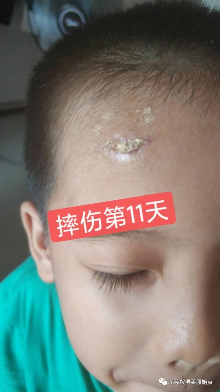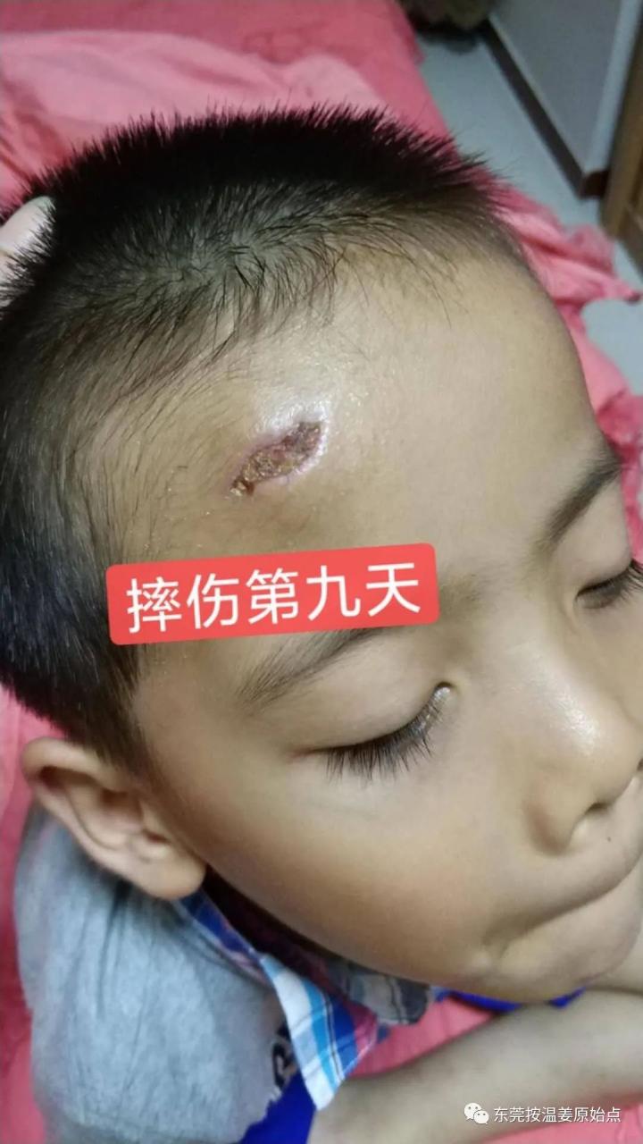 我回到家小孩已止血,但能清晰的看到一个大约长2CM深0.5CM的伤口,我是刚接触原始点不久,但原始点理论我还是有一定的概念,我赶紧煲姜汤帮他清洗伤口,然后用干姜粉裹上,晚上再按头部原始点加温敷,第二天起来发现伤口有浓状物流出,于是我马上请教阿平姐,按阿姐的提示做,每天清洗伤口2-3次,并将浓状物挤压干净后再用风筒将伤口吹干清洗的水份,洒上姜粉,按推头部原始点,贴上暖暖贴温敷头部(暖贴贴约11小时左右,因天气太热小孩出汗多不愿意温敷),并引导小孩喝姜水,增加内热源,以上步骤每天重复的做。到第7天(即一周后)因天气太热小孩不愿温敷,只有减少温敷头部时间,但其他的步骤不减少,而我耐心的照料下(小孩也乖配合我每天的处理),伤口两星期基本康复,感谢张医师的原始点医学,感谢阿平姐的指点,谢谢。