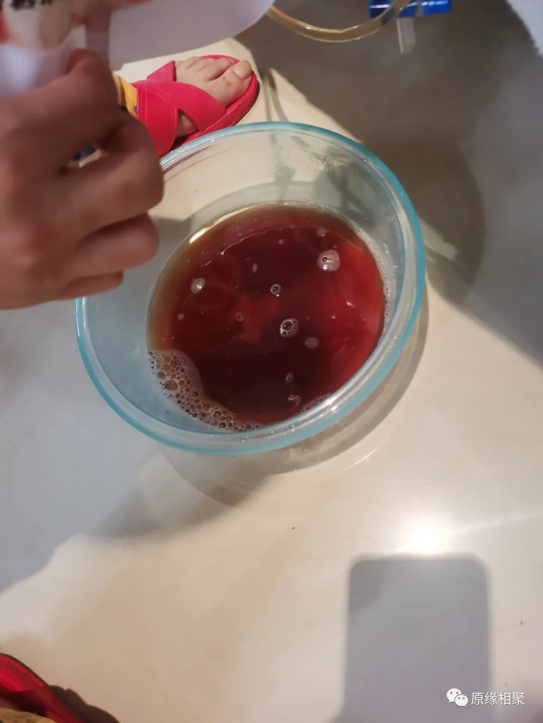 这张照片是第二天冲洗出来尿袋里面的颜色: