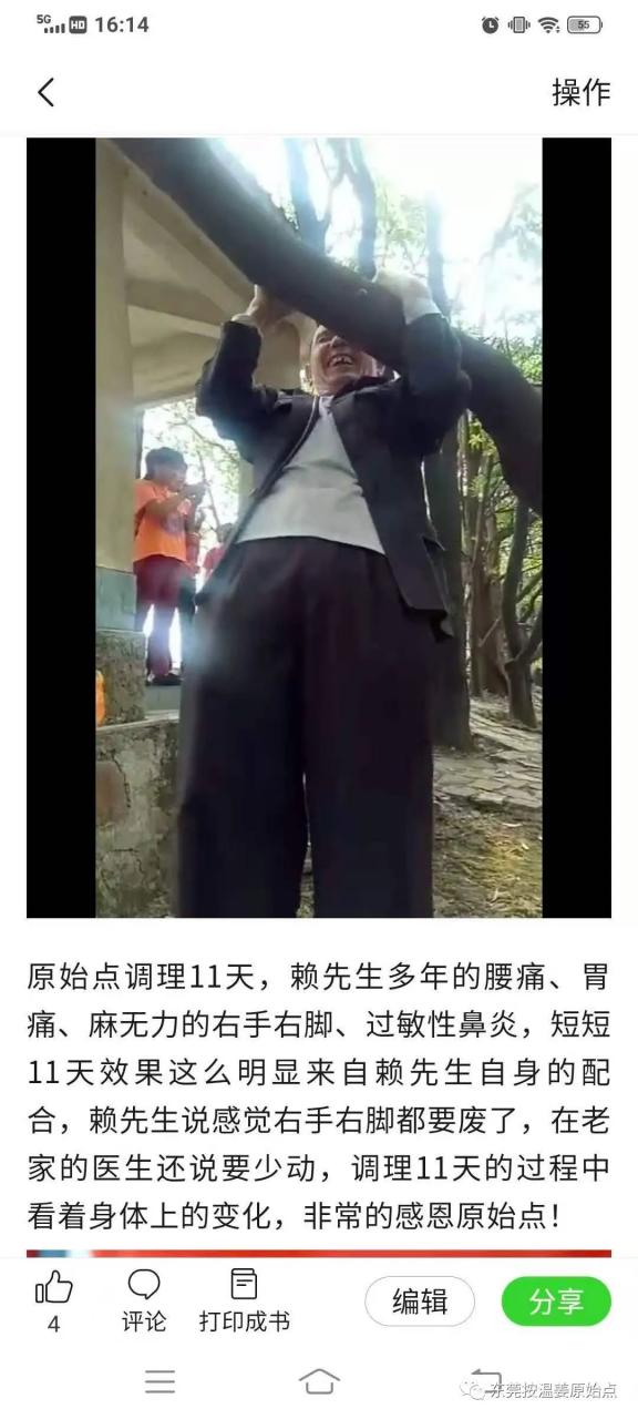 赖先生2018年11月5号结缘原始点(石碣公益原始点编号L1018),原始点按推一次后,右手有所改善,右手更有力了一点,右手也能抬的更高一点了!原始点调理第三天,赖先生告诉石碣公益原始点的志工,多年的大便不正常现已正常了(之前每天大便2~3次),睡眠也有所改善,腰痛、胃痛这二天暂时没痛过。
