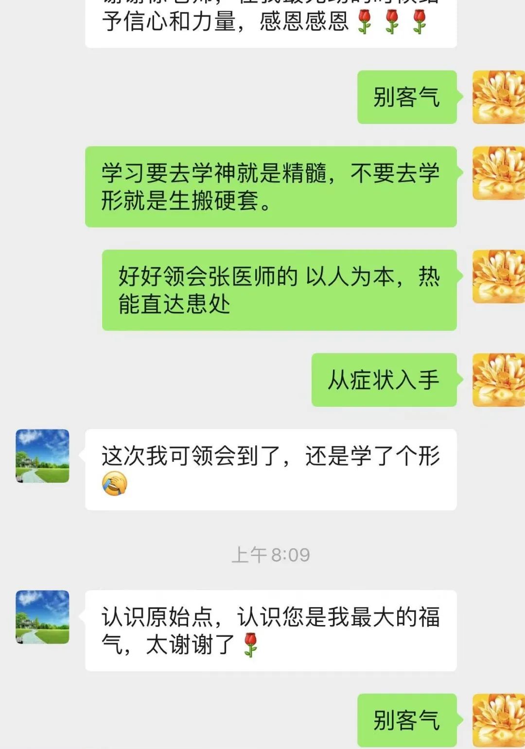 反思自己,手法不行,温敷不到位,心态也变得焦躁,休息也不好,灌肠浓度也不到位,种种导致效果不佳,并不是原始点不行。我非常认可昨晚您说的原因以及解决办法,通过这一次,我对原始点有了更深刻的认识,对自己的日常行为习惯也有了觉察。